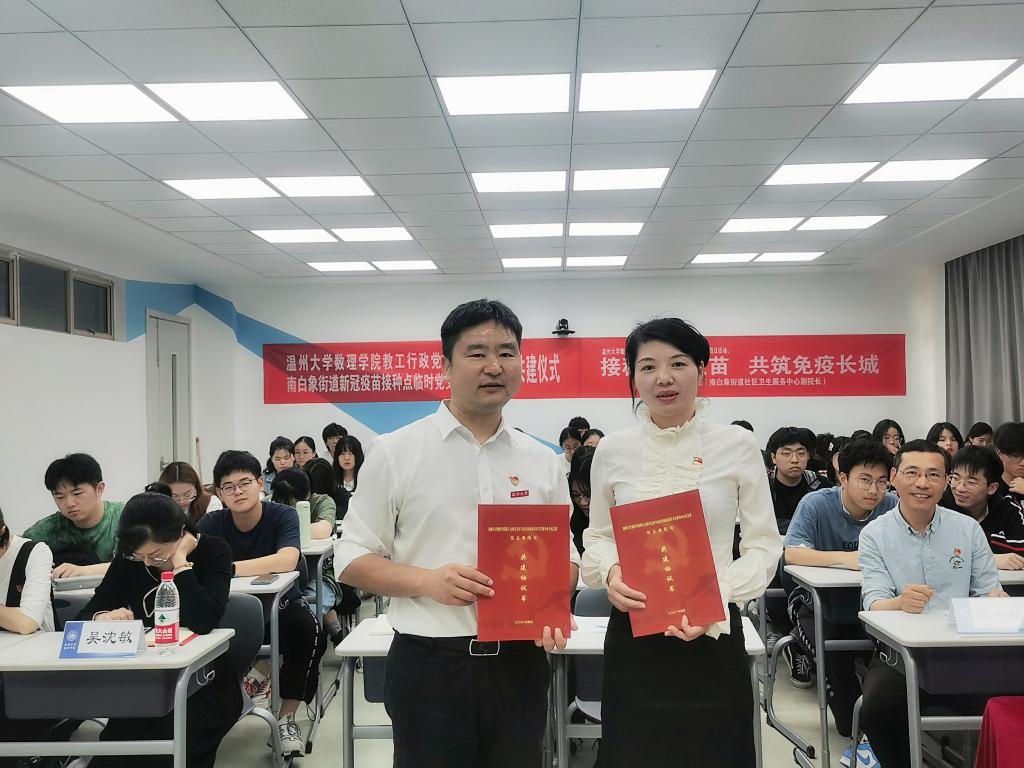 在这次数理问茶活动中,潘晓琼医师还代表新成立的南白象街道新冠疫苗接种点临时党支部,与永利集团304am官方入口教工行政党支部签署了支部共建协议,这也是永利集团304am官方入口首次与医务部门开展支部联建活动,对于提升大学生的卫生健康知识具有积极作用。