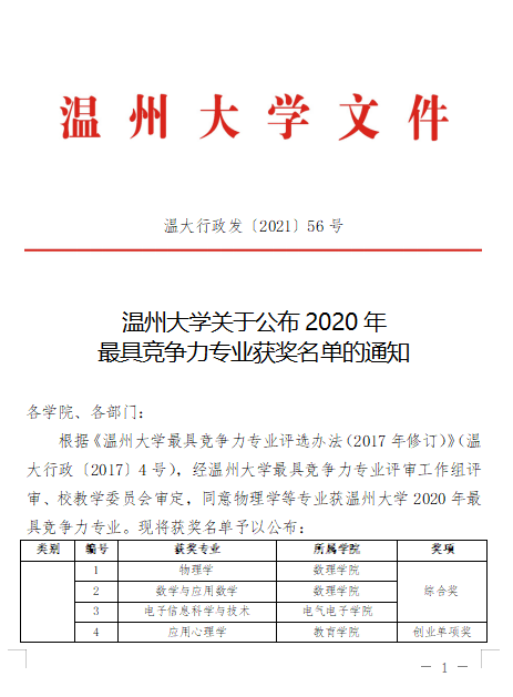 “数学专业获2项综合奖,物理专业获1项综合奖+1项薪酬单项奖,信算专业获2项薪酬单项奖+1项创业单项奖,统计专业获2项薪酬单项奖……”日前,永利集团304am官方入口公布2020年度最具竞争力专业名单,永利集团304am官方入口四个专业收获九个奖项,成绩喜人,进一步凸显了温州“数学家之乡”的办学优势。