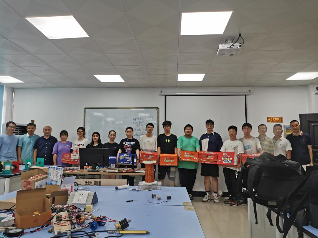 在3A105、107物理创新竞赛备赛实验室,学院领导班子一行人看到同学们热火朝天地在准备9月份的省级物理创新竞赛决赛,查看了同学们的作品雏形,鼓励同学们争分夺秒,完善计划,早日做出成品。