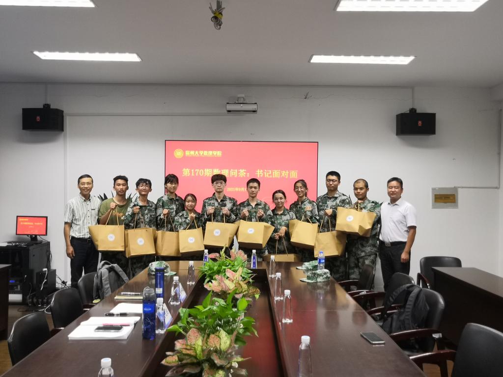 9月17日,在2021级新生刚入学不久之际,为了解新生在我校、永利官网的学习适应情况,当天中午,永利集团304am官方入口举办第170期数理问茶活动,特别邀请学院党委书记陈兴桂同志,与2021级新生代表开展“书记面对面”座谈交流活动。永利集团304am官方入口党委副书记章志图老师主持本次问茶活动。