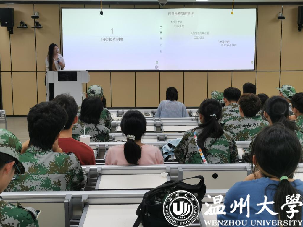 为提升寝室卫生环境,切实加强寝室管理,学院还邀请了自管会纪检部冯静茹同学为新生寝室长进行了文明寝室创建标准培训,详细讲解了内务检查、优秀评比等制度。