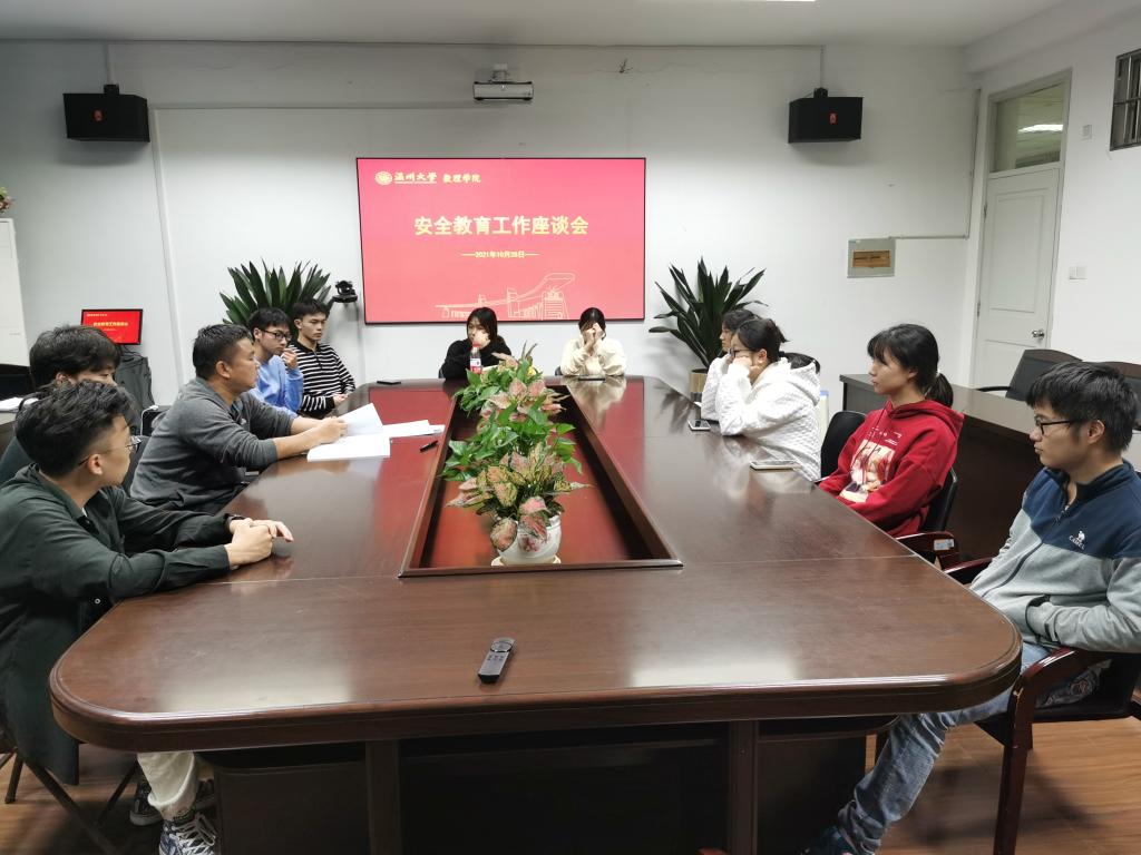 为进一步做好学生安全教育工作,10月28日晚上,学院开展安全教育工作座谈会,专门邀请近期在安全工作方面存在一定隐患的15位同学参与座谈交流。学院党委副书记章志图、辅导员叶成广老师参与了座谈交流。座谈会上,章老师通报了学校安全稳定工作会议主要精神《校级通报批评》文件,强调了安全之于学生本人与校园集体的重要意义。各与会同学在检讨自身问题的同时,也进一步反思了自身存在的其他安全隐患,例如骑车单手打伞,骑电动车不戴头盔、逆道行驶、寝室桌面脏乱引发的电器短路问题等,大家表示会消除侥幸心理,提高重视,一起助力平安校园建设。