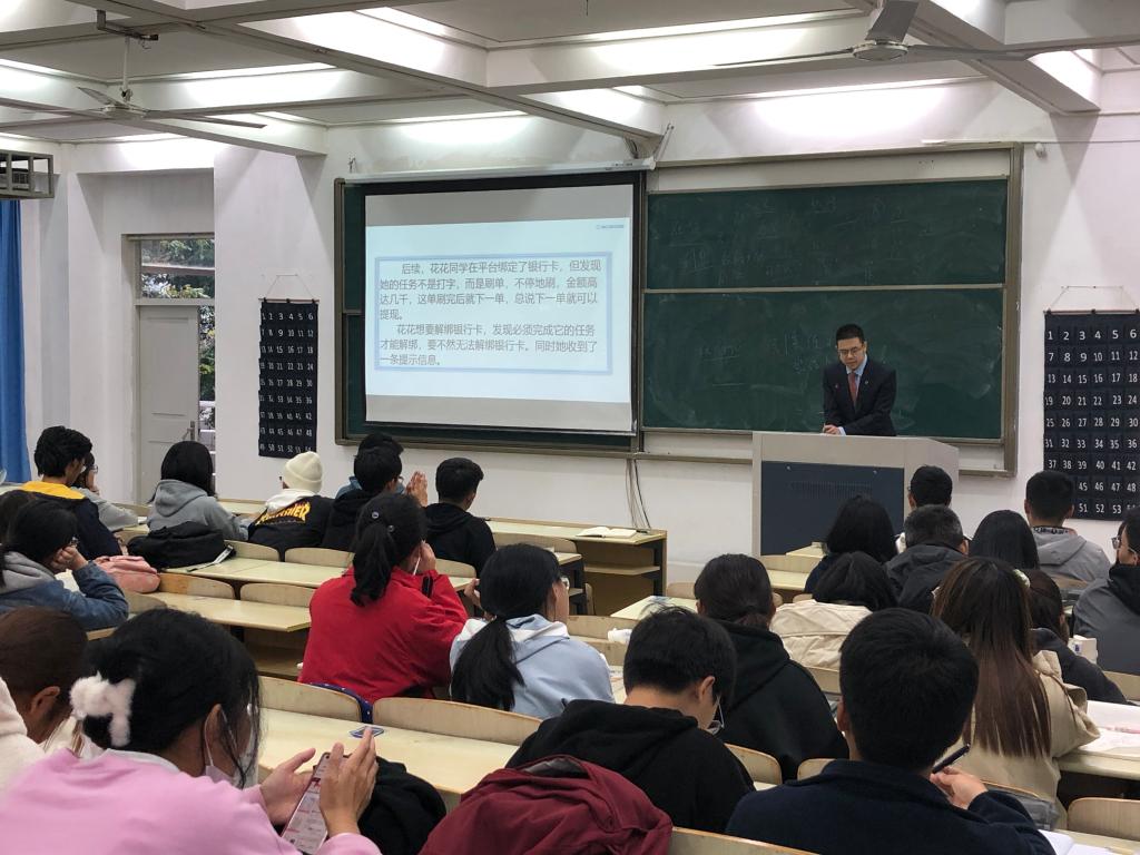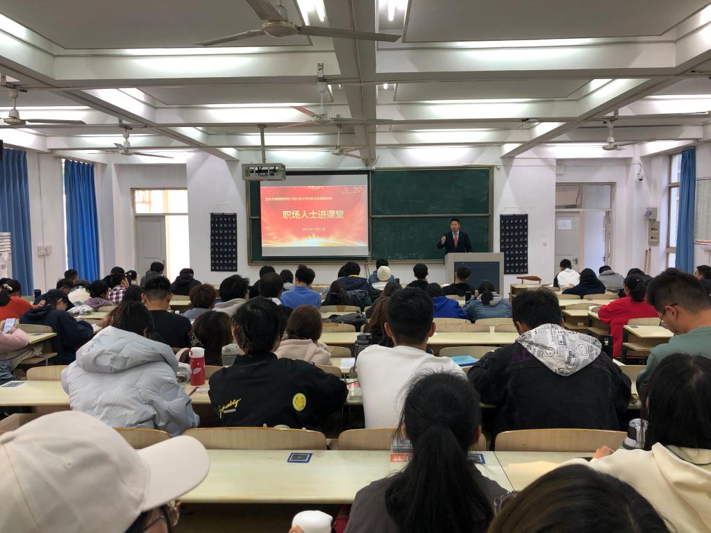 为加强大学生职业生涯规划教育,11月15日,永利集团304am官方入口开展“职场人士进课堂”活动,邀请任职于新华保险温州中支的统计专业毕业校友张仁军学长,为21统计班的学弟学妹指点迷津。讲座中,张仁军学长分享了自己在温大的成长经历,介绍了自己在新华保险的职场生活,精彩的演讲让同学们听得津津有味也收获颇丰。这次活动中,新华保险温州中支的HR李鹏老师也为统计学子们带来了《金融知识进课堂》专题讲座,重点指导大学如何防范网络诈骗。