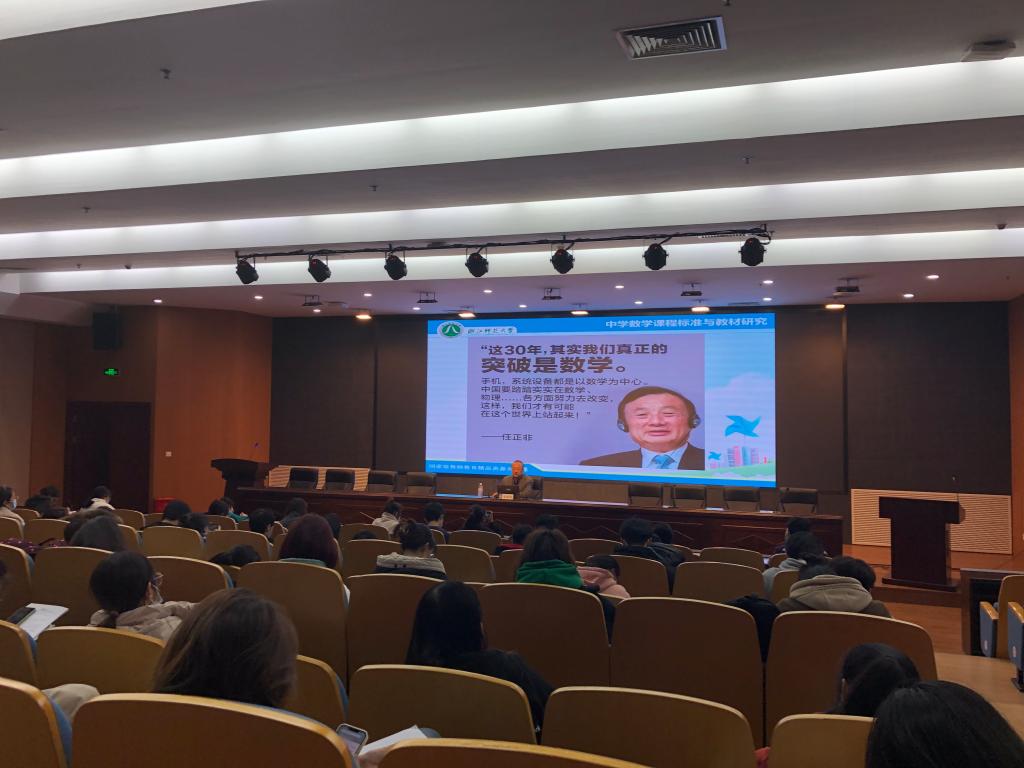讲座伊始,张维忠教授提出“什么是数学”并形象地将数学描述为洋葱,需要一层一层吃透数学,而在现实的数学教学中却面临许多困境。因此,他引出“只有兼顾文化的数学教育改革,才能收到良好的教学效果”。接下来,他通过古今中外的案例阐述数学应用的广泛性。之后也界定了广义和狭义的文化,文化的若干特征分析以及数学与文化的密不可分性。张教授还从克莱因、阿基米德等数学家角度详细介绍了数学与文化发展的关系;从历史与文化角度,带领我们欣赏了数学与人文之桥;从诗歌角度,提出将有趣、有用和有文化作为数学学习的三种境界。