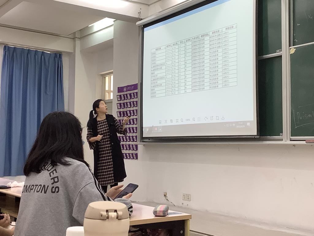活动伊始,黄辉林老师向同学们展示了下学期开设的全部任选课课程,接着向同学们介绍了每门课程所学的大致内容,并从专业角度给出了选课建议。同时,黄辉林老师建议个别任课选学分不够的同学,可以跨专业或者跨年级进行选课。