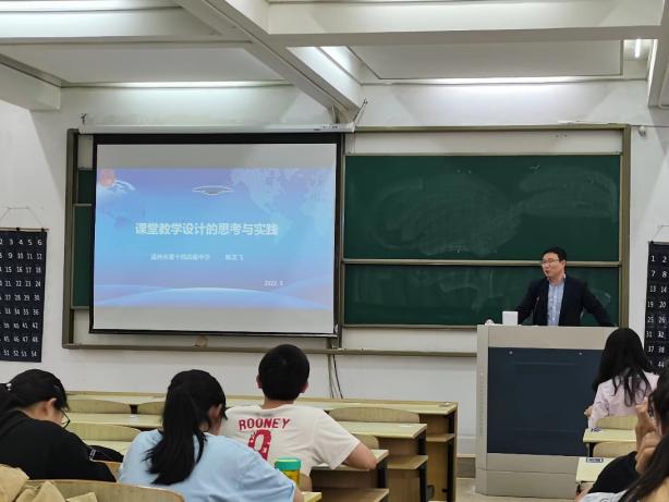 2022年5月27日,永利集团304am官方入口开展了以《课堂教学设计的思考与实践》为主题的讲座,本次讲座由正教授级中学高级教师、温州第十四高级中学副校长陈芝飞老师主讲,永利集团304am官方入口曹蒙蒙老师主持。