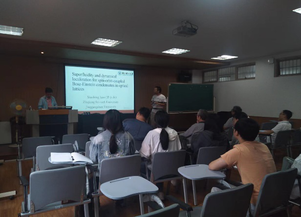 2022年9月23日下午14:30,浙江理工大学罗小兵教授应邀在永利集团304am官方入口3B205为永利官网师生作主题为《光学晶格中自旋-轨道耦合玻色-爱因斯坦凝聚体的超流行和动力学局域》的学术报告。这场报告会由永利集团304am官方入口熊伟老师主持,永利集团304am官方入口物理系的多名教授和青年老师,以及研究生参加了这场学术报告。