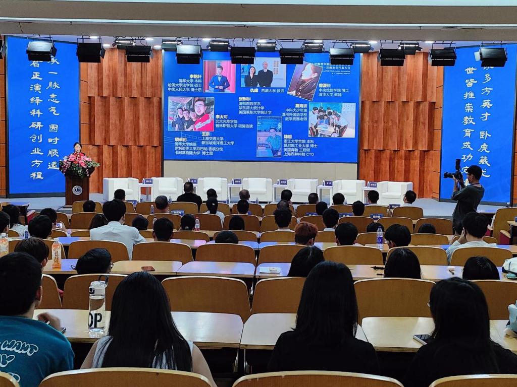 第二项议程为:满载期许、筑梦未来——校友互动沙龙。六位优秀校友依次落座后,高利新校友、胡大为校友与吴军校友依次分享成长经历,让学子们看到了“从无到有”的向上攀升,感悟到了“所有的成长都是经历”。接下来,主持人向六位校友总体提问,询问他们当年大学生活中记忆犹新的事情,每位校友的真诚分享,让在场学子感触良多。随后,主持人就“如何持续热爱数学、发扬数学家探索精神”、“如何推进温州“数学家摇篮”工程项目和温州教育现代化”、如何看待成功等问题依次向校友提问。现场学生也积极参与互动,提出“新高考模式下,未来的新一代物理教师如何提高竞争优势”、“非师范专业学生选择哪一方面创业更有优势”等问题。校友们畅谈想法,并给与会学子和未来教师提出诚挚建议。