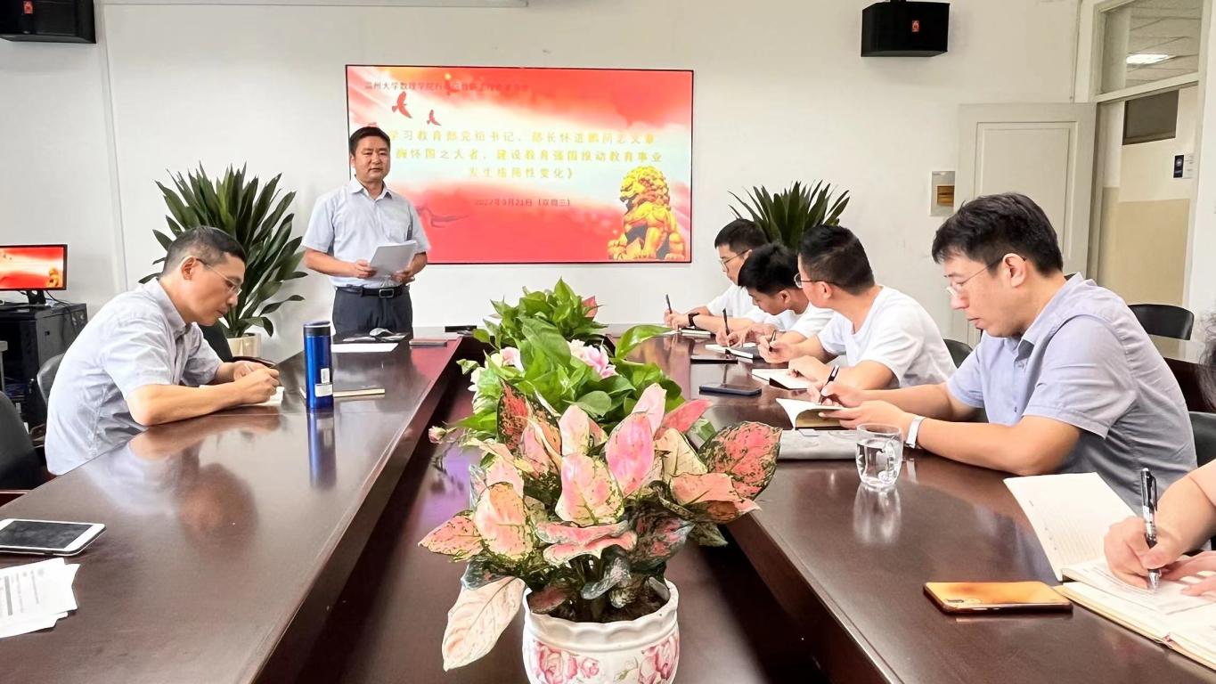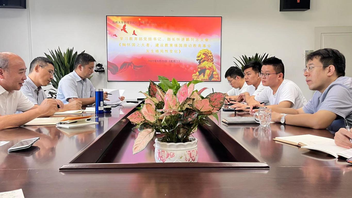 9月21日下午,在永利集团304am官方入口教工行政党支部组织下,学院行政教职工周三理论学习会在南校3B406会议室举行。学习会上,行政党支部书记章志图同志领学了教育部党组书记、部长怀进鹏同志的文章《胸怀国之大者,建设教育强国推动教育事业发生格局性变化》,以及中国工程院院士、华中科技大学党委书记李元元同志的文章《加快构建立德树人体系》,并与大家交流了学习体会。