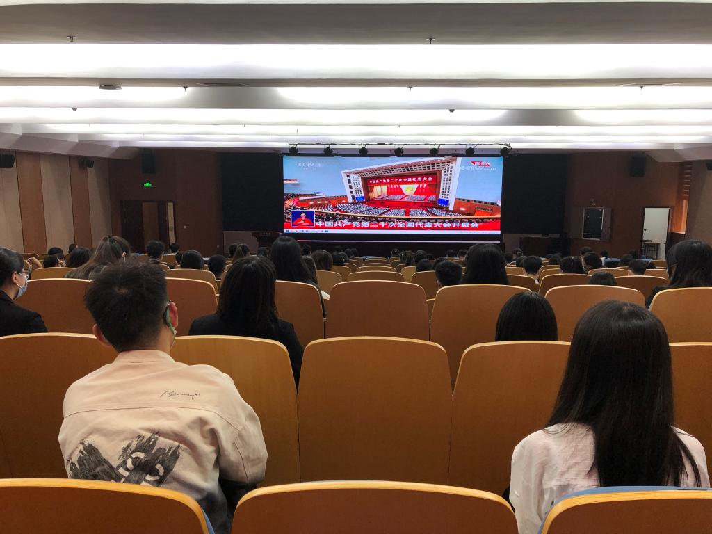 10月16日上午,中国共产党第二十次全国代表大会在北京人民大会堂隆重开幕。当天上午,数理学院党委开展师生党员联合主题党日活动,组织党委下属各师生支部在岩松堂步青厅集中收看党的二十大现场直播,第一时间学习党的最新理论和习近平总书记最新重要讲话精神,以实际行动迎接党的二十大胜利召开。
