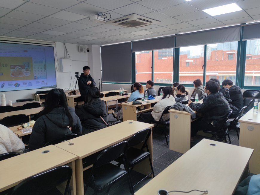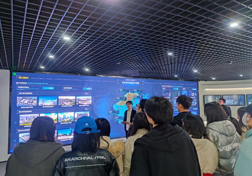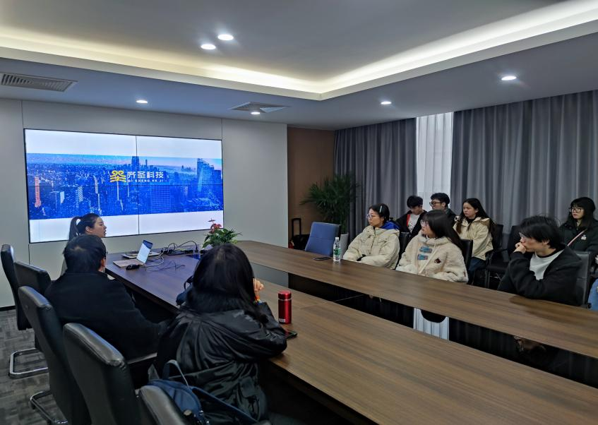 随后一行人来到杭州指针信息技术有限公司,创始人陈贺对老师同学们的到来表示热烈欢迎。陈贺简要介绍了公司目前的发展规模、发展历程及相关业务等情况,他表示,希望以此次走访为契机,在人才培养、毕业生就业和科研合作等方面进一步加强联系,紧密合作,培养更多符合行业发展方向的复合型人才。