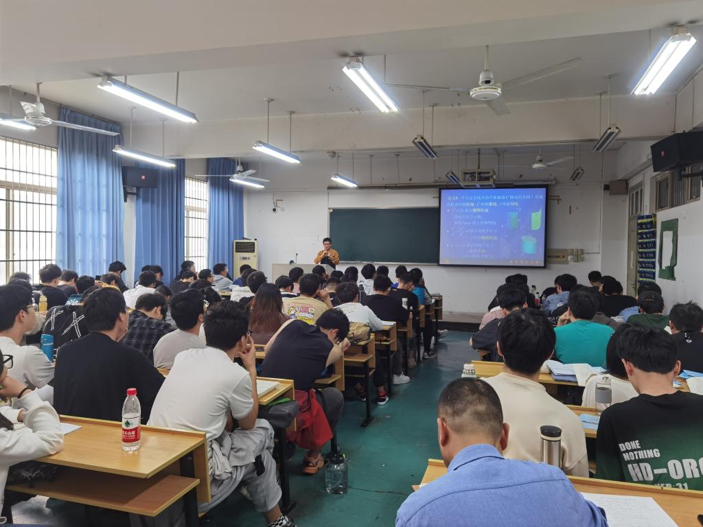 此次公开课为《高等数学》第七章曲面及其方程。潘老师通过两个小例题引出曲面上的两个基本问题。围绕第一个基本问题对旋转曲面以及柱面方程进行讨论。课堂上,同学们听课认真,反馈积极,课堂秩序良好。