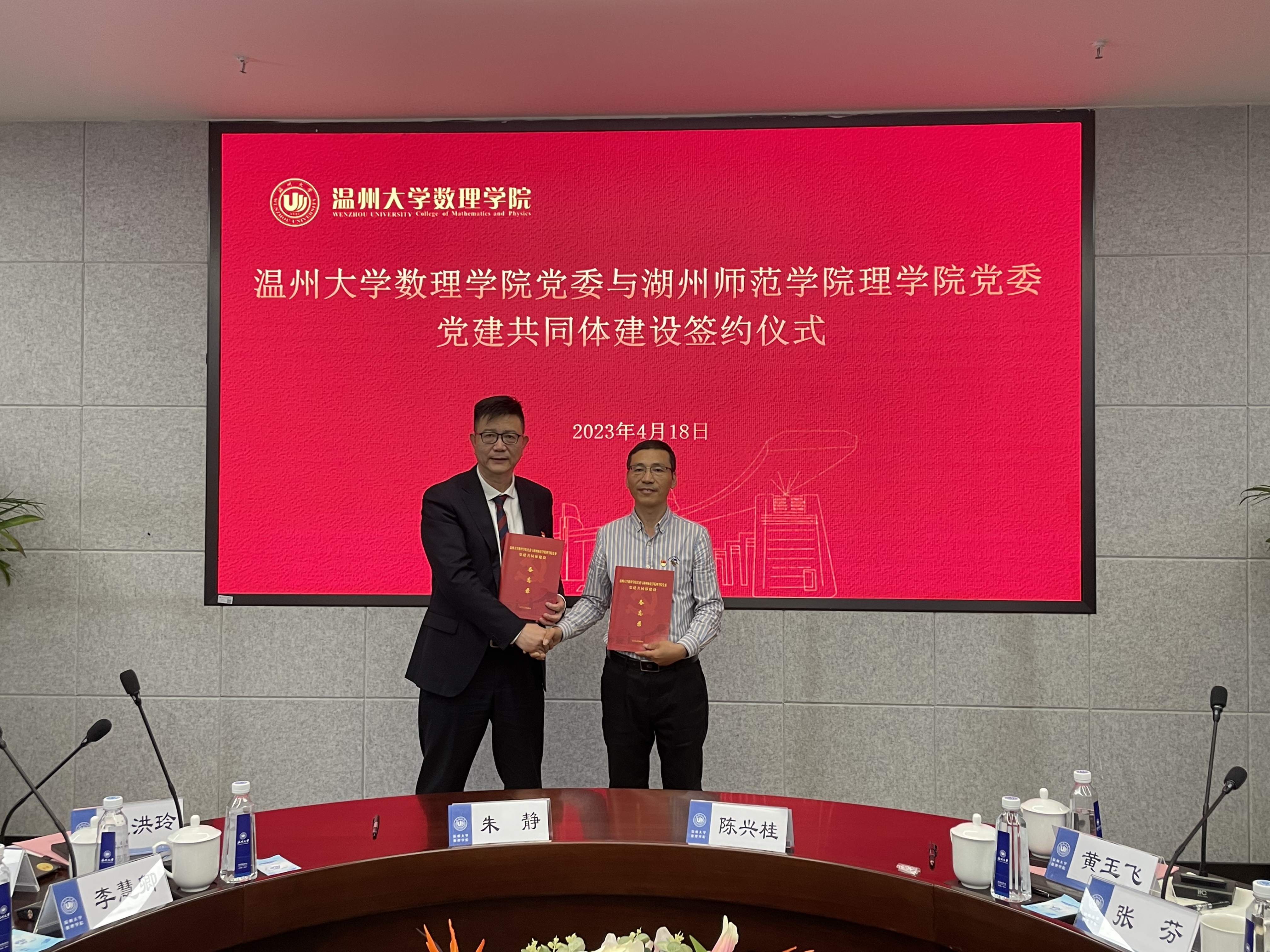 湖州师范学院理学院党委书记朱静表示,双方党委签署的《党建共同体建设备忘录》,可以让“常来常往,深入交流”制度化,是实现良性互动、优势互补的重要纽带。他希望双方在组织共建、党课共享、活动共办、基地共享、品牌共育、发展共进等方面更有作为,特别是在发展共进层面,双方能共享资源、互通有无,为促进基础学科研究做出更大贡献。