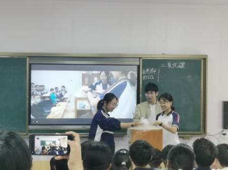 4月27日下午,卢鑫阳执教《二氧化碳》,以柯南为主线,并用一种调查委托的形式,利用案件、受害人、线索、嫌疑人的方式,生动地探究使紫色石蕊变色的是什么物质;吴佳阅执教《二氧化碳》,利用雪碧将二氧化碳的六大性质进行串联,课程中使用的二氧化碳均来自于一瓶雪碧;叶宇城执教《二氧化碳》,以可乐为引入,多样化的探究实验为线索,逐一突破,讲解二氧化碳的性质。