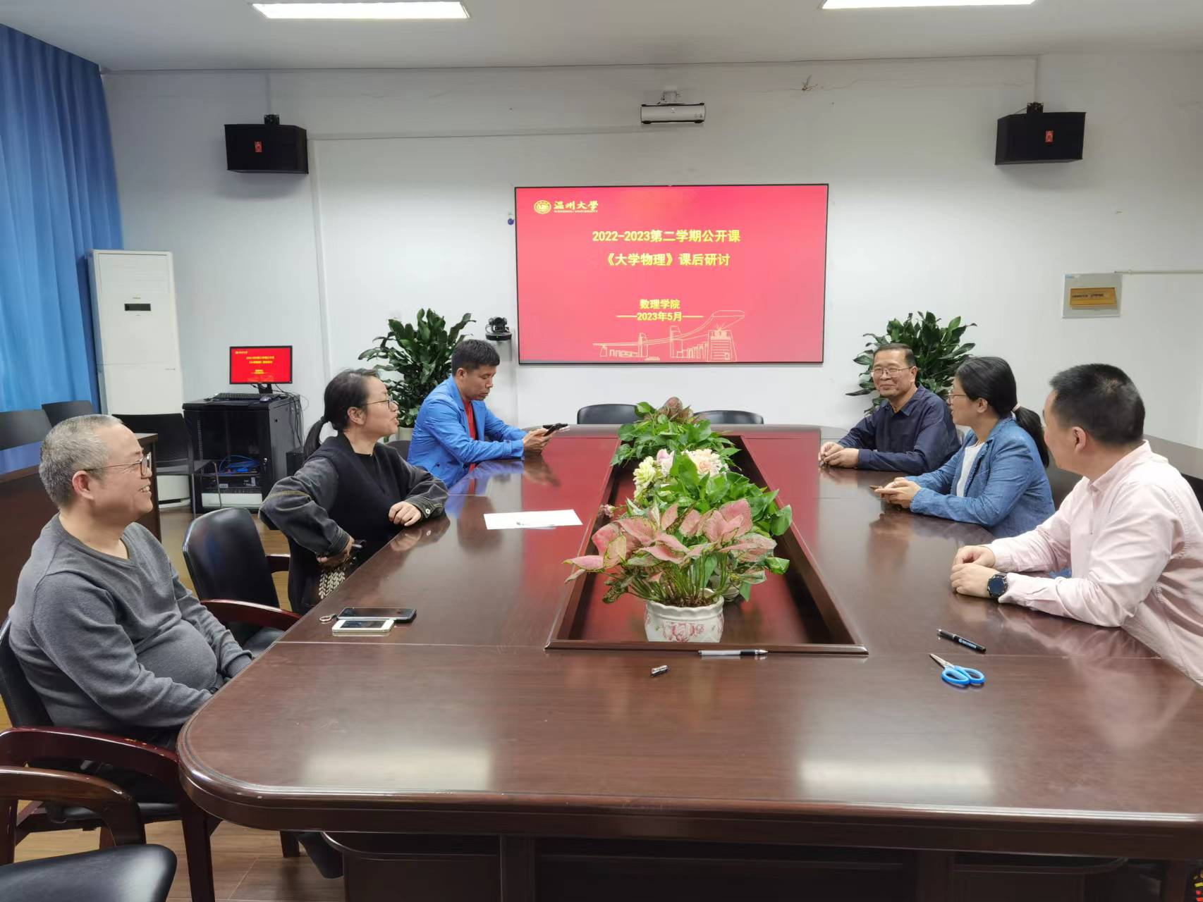 课后研讨会在3B406会议室进行,由叶建柱老师主持。研讨会成员认为:在整体的课堂教学中,同学们听课认真、互动积极。蔡老师教学理念先进,突出了学生在教学中的主体地位,课堂氛围好;教学基本功扎实,尤其是教学语言富有感染力,也善于使用现代教学手段辅助教学,教学效果突出。