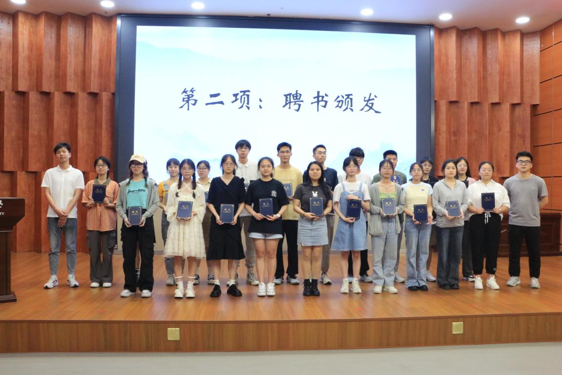 接着,刘秀成老师和刘日胜老师为主席团成员与各部门部长颁发聘书,肯定了他们一年来学生工作取得的成果。