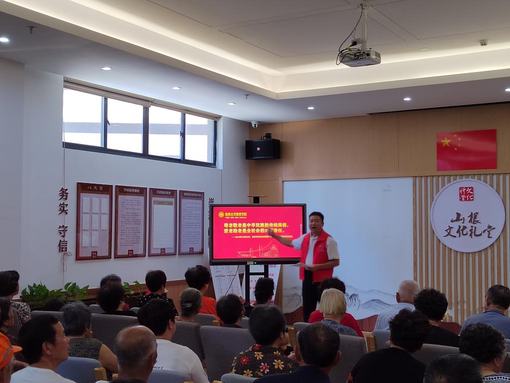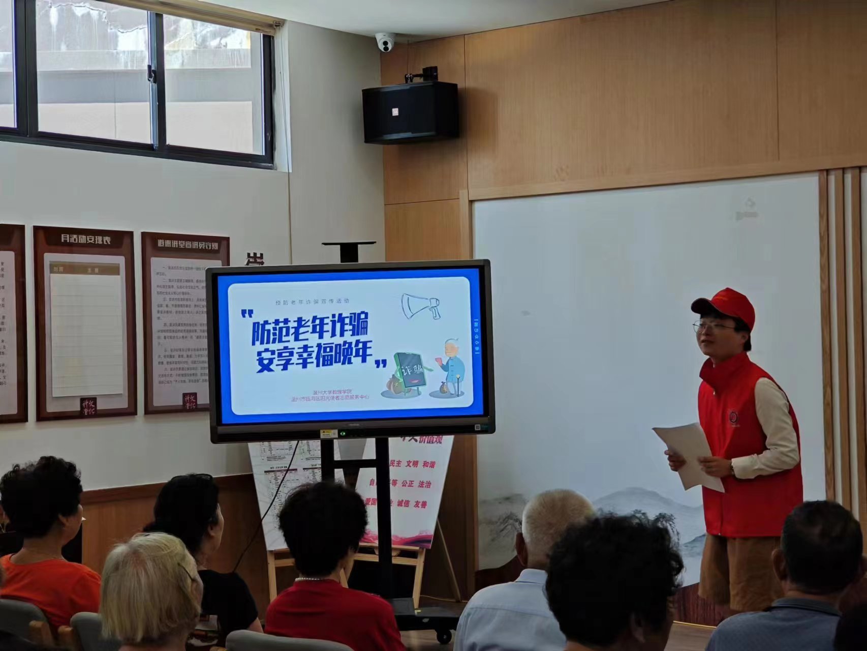 学院“阳光”志愿者鲁逸晨为老人们带来了一场《防范老年诈骗 安享幸福晚年》专题培训,特别叮嘱老人们要安装国家防诈中心APP,帮助老人守护好钱袋子,保障晚年幸福生活。