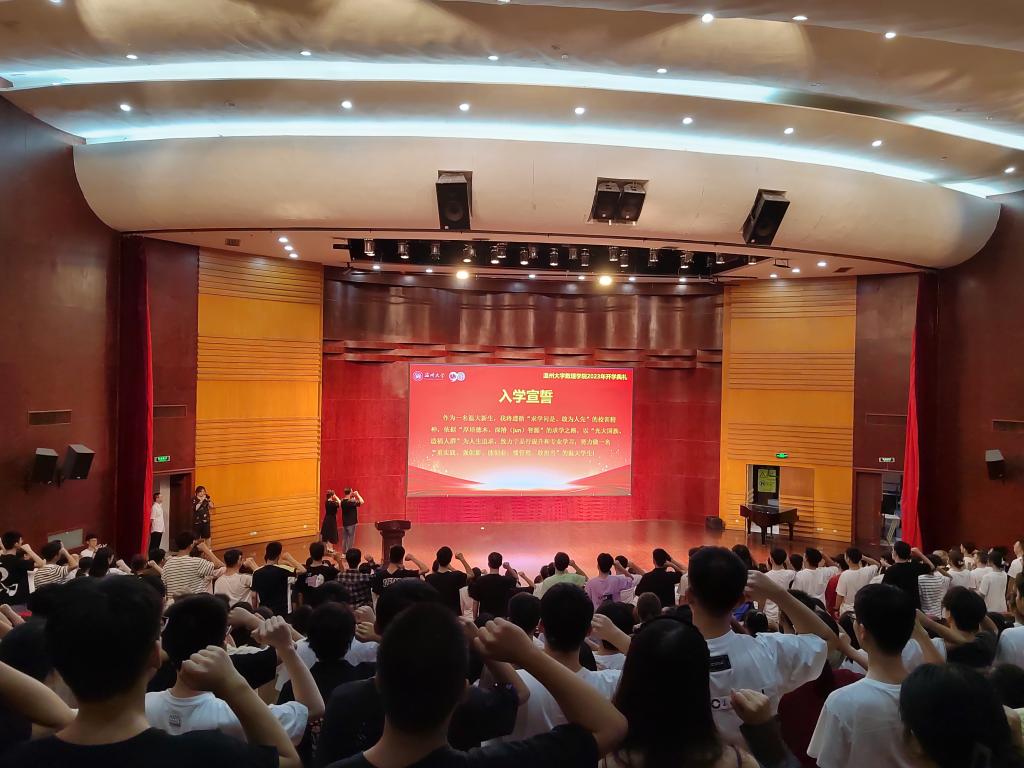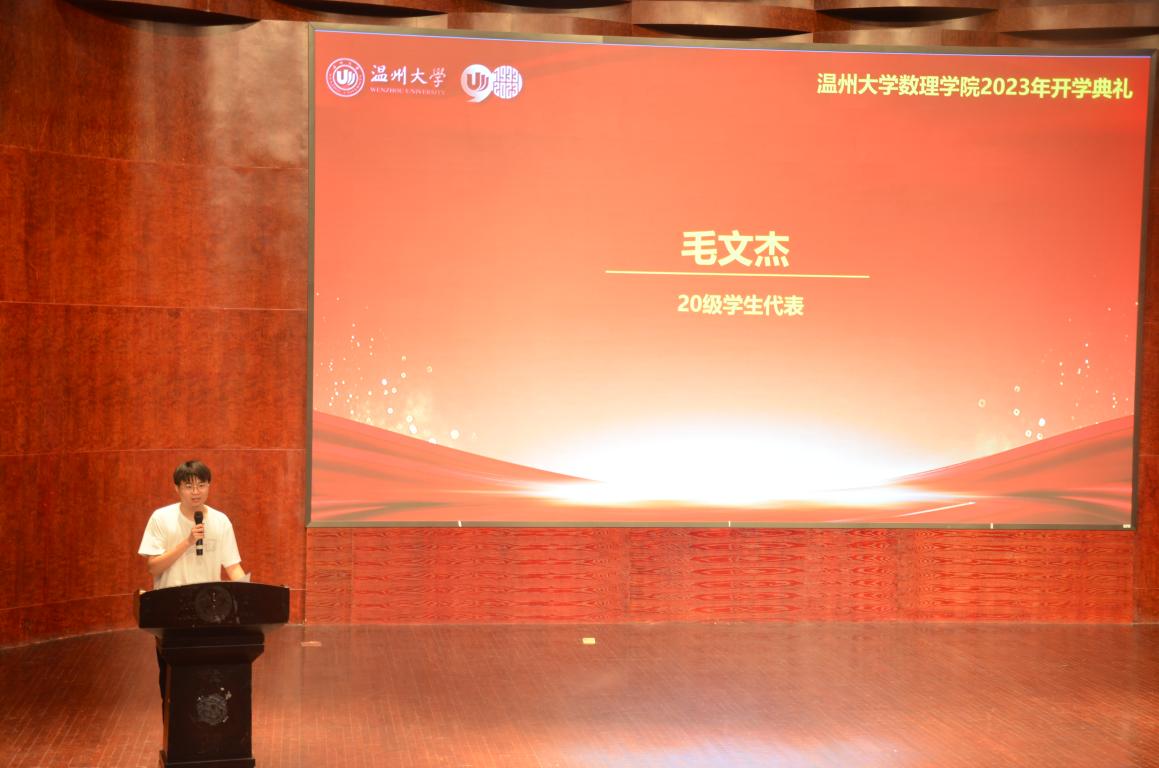 最后,2023级新生集体宣誓:作为一名温大新生,我将遵循“求学问是、敢为人先”的校训精神,依据“厚培德本、深濬智源”的求学之路,以“光大国族、造福人群”为人生追求,致力于品行提升和专业学习,努力做一名“重实践、强创新、能创业、懂管理、敢担当”的温大学生!