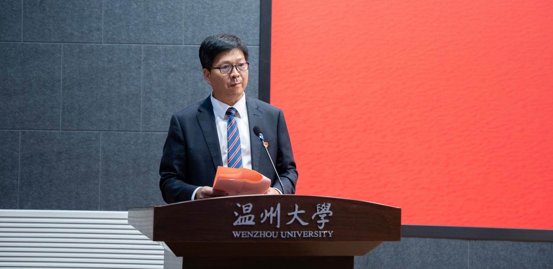 宣讲团教师团团长郭洪欣作代表发言。他表示将高度负责的态度,通过积极加强宣讲团队伍建设,积极深研温籍数学家精神,积极扩大宣讲团的影响力,努力做好温籍数学家精神的宣讲工作。