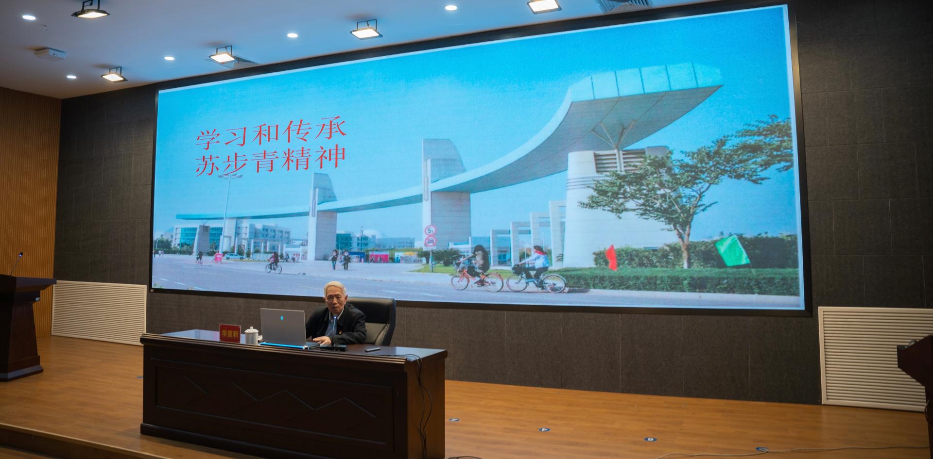 当天还举行了温籍数学家精神宣讲报告会。作为苏步青先生的学生代表,华宣积教授作题为《学习和传承苏步青精神》的宣讲报告,从苏老生平、学术贡献、教书育人等方面,全面展现了苏步青先生爱国奉献、求实创新、教书育人的动人事迹。作为谷超豪先生的学生代表,陈恕行教授作题为《弘扬温籍数学家精神:谷超豪先生感人事迹》,亦从谷老生平、学术贡献、教书育人全面展示了谷超豪先生热爱数学、勇攀高峰,胸怀祖国、服务人民,甘为人梯、奖励后学的动人事迹。