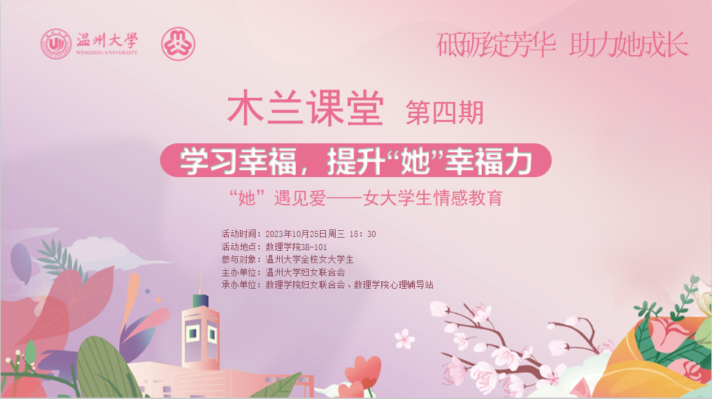 提升“她”幸福力|永利官网妇联与心理辅导站成功举办永利集团304am官方入口第四期“木兰课堂”