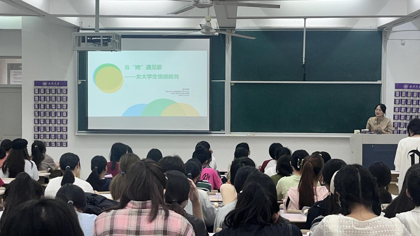 为使同学们树立积极正确的恋爱观,培养同学们爱与被爱的能力,理性、正确、平和地看待自己的情感问题,永利集团304am官方入口妇联与学院心理辅导站于10月25日下午15:30在永利集团304am官方入口3B101教室开展永利集团304am官方入口第四期“木兰课堂”,本次活动以“当她遇见爱——女大学生情感教育”为主题,永利集团304am官方入口心理健康教育中心主任余如英老师主讲,100余位女大学生参与。