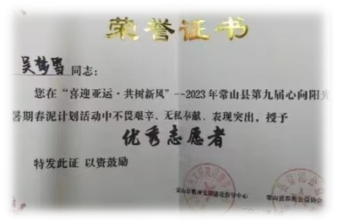 班上同学积极参加各种社会实践活动,在各种体育活动和各专业文化竞赛中获得奖项累计15项,获得优秀社团干部3人。此外,班上同学积极参加各种志愿者活动,累计参加志愿者活动50项,最高的志愿者小时高达310个小时。班上1位同学荣获2023年优秀志愿者,3位同学曾因积极参加志愿者活动而获得学校的通报表扬。丰富多样的实践活动与志愿活动,大力培养了同学们的团结意识,拓展思维,促进全面发展,提升了班级的凝聚力。
