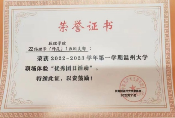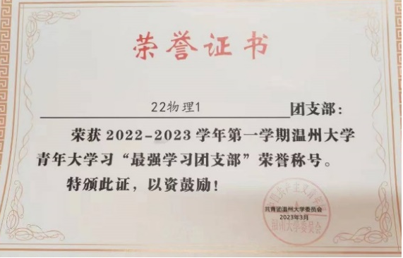 喜报|永利官网22物理(师范)1班获评为校级“优良学风班”