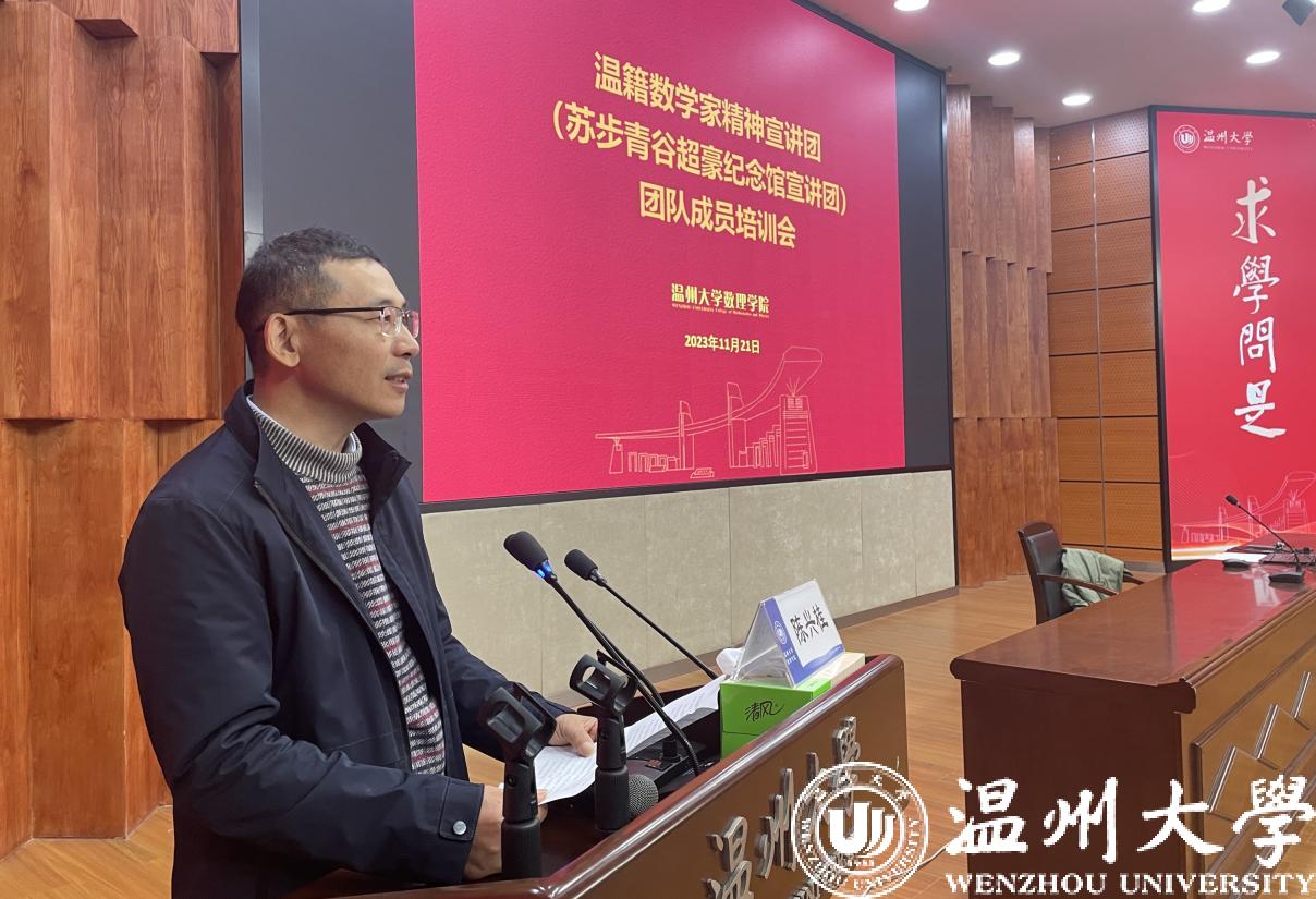 学院党委书记陈兴桂为培训会致辞,他向与会师生介绍了永利集团304am官方入口苏步青谷超豪纪念馆基本情况,同时也对所有讲解员寄予了美好期望,鼓励团队提升水平,踔厉奋发,行稳致远。