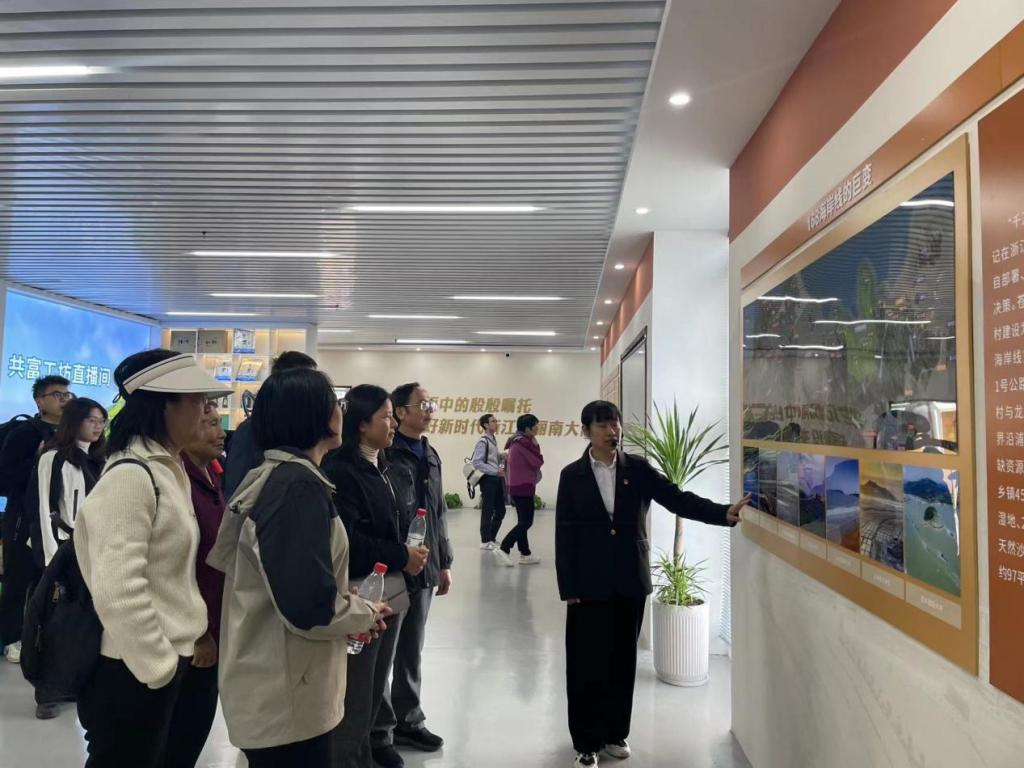 在小渔村循迹溯源馆内,支部党员在场馆讲解员的带领下,重温了习近平总书记当年的考察场景和重要指示精神,并了解了小渔村的抗灾事迹和发展历程。小渔村受2006年8月台风“桑美”影响,灾情非常严重,时任浙江省委书记习近平第一时间亲临考察现场了解灾情,作出了“灾后重建工作是坚持执政为民、促进社会和谐的民心工程,各级领导干部一定要把这一民心工程抓实抓好,把受灾群众的利益放在首位”的重要批示。支部党员们还走访了小渔村的足迹公园,通过实地考察,看到了小渔村推动乡村产业发展、完善乡村基础设施、改善乡村生态面貌的丰硕成果,深入感悟乡村振兴战略的时代意义。