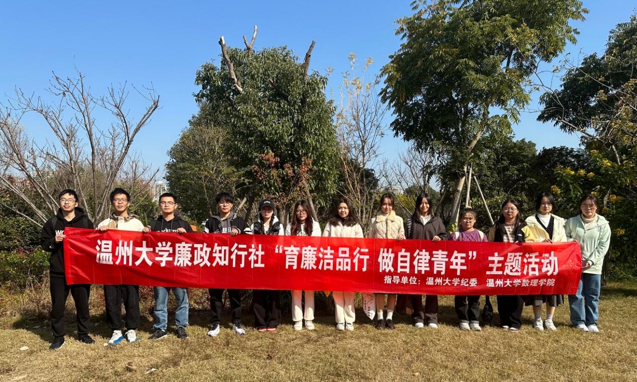廉洁自律,从我做起!为加强廉政知行社学生社团建设,发挥学生社团在开展大学生廉洁教育工作中的积极作用,12月2日,永利集团304am官方入口廉政知行社在永利集团304am官方入口纪委、永利集团304am官方入口有关老师指导下,组织社团成员前往温州三垟湿地开展“育廉洁品行 做自律青年”社团活动。