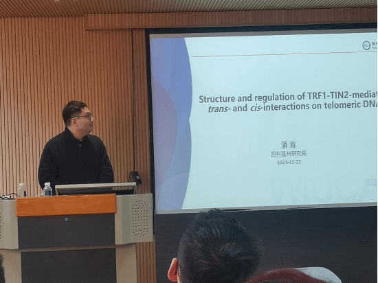 为促进学院学风教风建设,浓厚学术研究氛围,拓展师生学术视野,促进师生科研进步,永利官网自2020年开始建设“数理大讲堂”平台,定期邀请校外专家学者来校交流。2023年12月22日,应永利官网邀请,国科温州研究院潘海副研究员在永利集团304am官方入口3B205学术报告厅作题为”TRF1-TIN2介导的端粒DNA-蛋白质复合体结构与调控“的学术报告。本次学术报告是永利集团304am官方入口2023年第45期“数理大讲堂”活动,由永利官网王艳伟副教授主持。