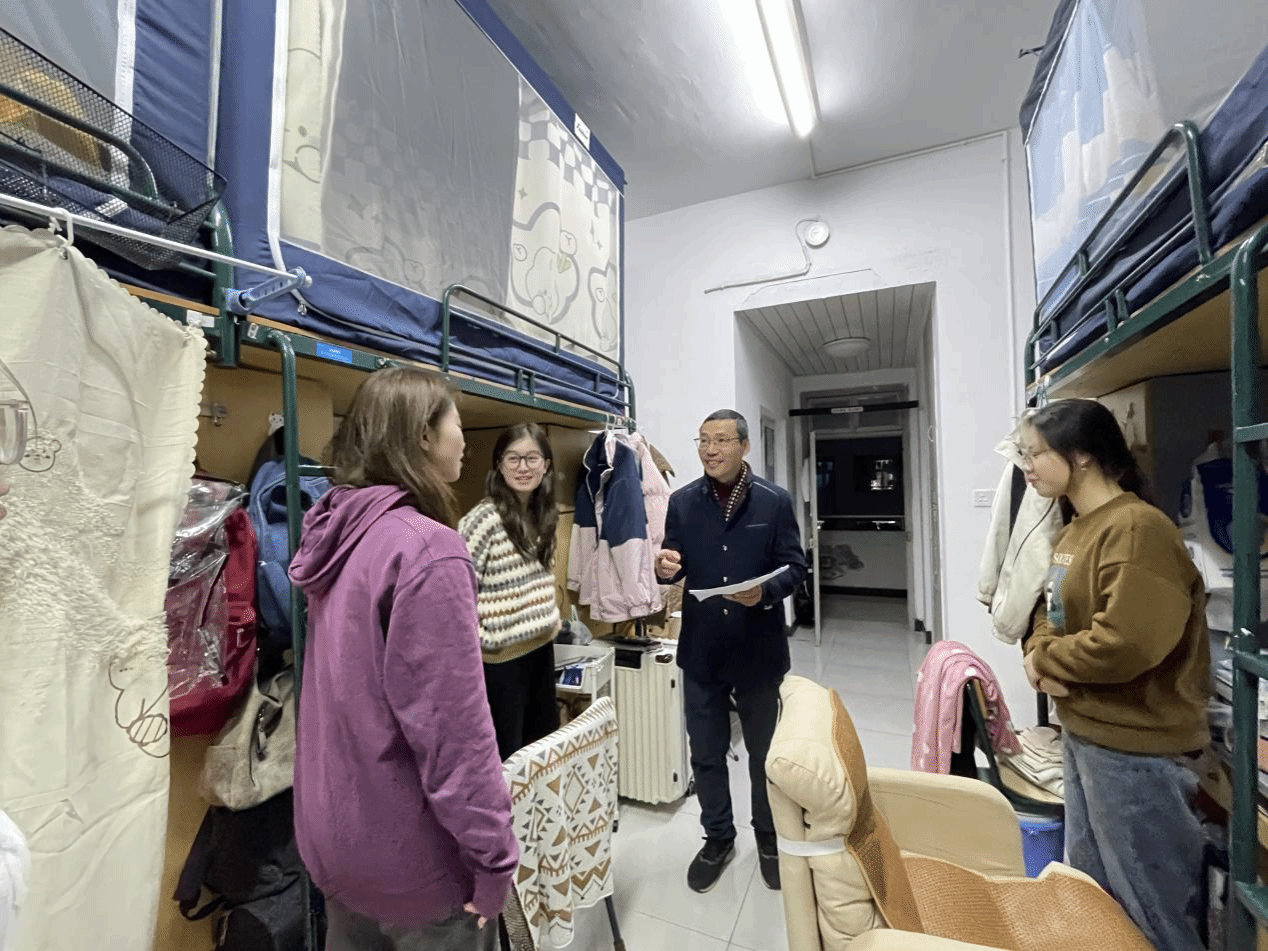 新学期伊始,为深入了解永利官网学生思想动态,帮助学生解决实际困难,3月3日晚,永利集团304am官方入口领导班子及学工团队深入学生宿舍,走访看望学生,了解学生学习、生活、思想状况,为学生送去新学期的关怀与问候。