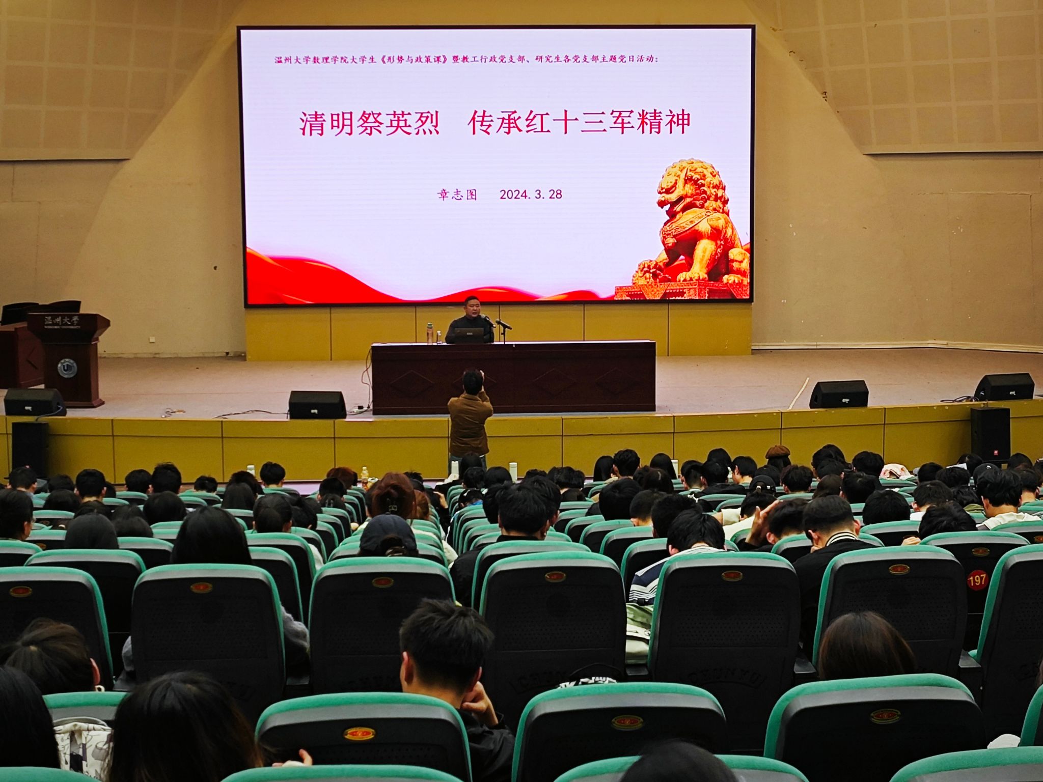 一年一清明,一岁一追思。为缅怀革命先烈,深入学习领悟红十三军革命精神,铭记革命历史,弘扬爱国主义精神,3月29日,在清明节将至之际,永利集团304am官方入口开展了“清明祭英烈 传承红十三军精神”主题宣讲活动,讲座由永利集团304am官方入口党委副书记章志图主讲,一千余名师生参与了此次活动。