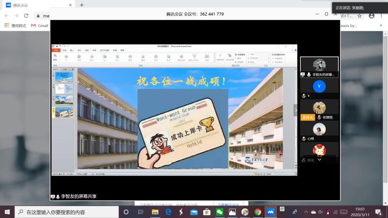 18:30,会议准时开始。本次交流会分为三部分:心得分享、同学提问、经验总结。首先分享心得的是浙江师范大学教师教育学院就读研究生——邹伟通。本次会议中他重点介绍了考研复试的相关内容,告诫同学们要放平心态,准备充分,做到有条不紊。随后,华南师范大学的李智友校友也分享了自身的考研经验。他强调华南师范大学更重视面试,面试时要抓牢自己熟悉的点,既不要自满,也不要自卑,要相信自己,从容应试。同学提问环节中,两位校友就考研中遇到的诸多问题为同学们提供了许多建议。会议最后,何林李与王艳伟老师也相继分享了她们的建议和经验,希望同学们可以积极备考,全力一搏,争取通过考研复试。