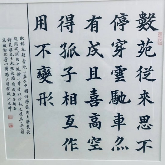 32件精美的书画作品主题鲜明,既有习近平总书记关于教育的重要论述,又有苏步青和谷超豪先生的诗作、格言,与永利官网的文化建设高度契合。徜徉于这些书画作品之中,不仅能再次感受苏步青、谷超豪两位老先生的豪情壮志,更能激发不忘教育报国的初心,牢记学院担负的使命担当。