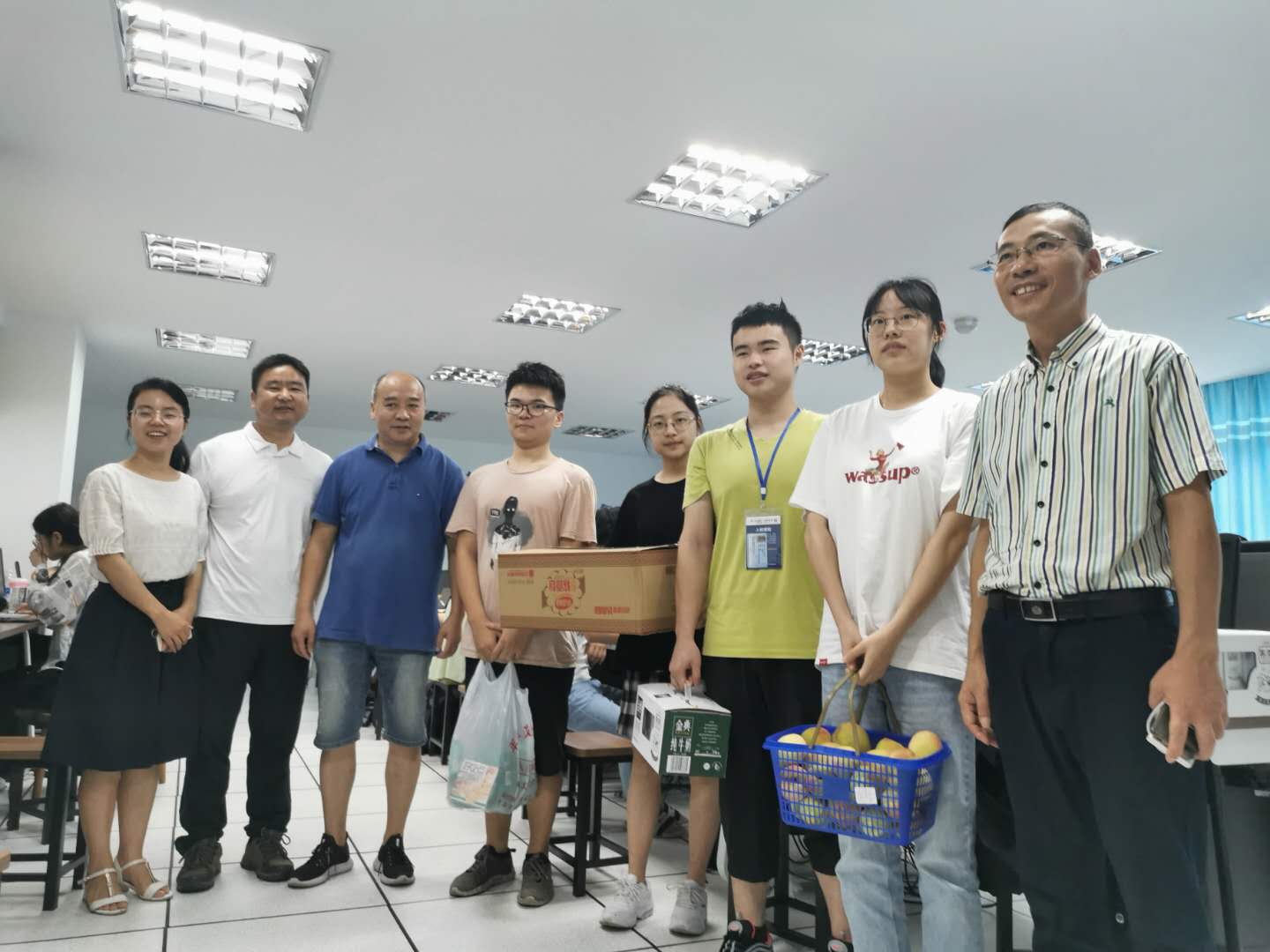 7月26上午,骄阳似火,学院领导高利新院长、书记陈兴桂、副书记章志图、副院长何林李一行看望暑假留校准备各类学科竞赛的同学们和指导师们,给他们送上慰问品。