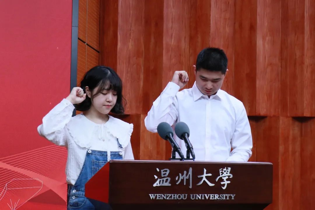 最后,2019级新生集体宣誓:作为一名温大新生,我将遵循“求学问是、敢为人先”的校训精神,依据“厚培德本、深濬智源”的求学之路,以“光大国族、造福人群”为人生追求,致力于品行提升和专业学习,努力做一名“重实践、强创新、能创业、懂管理、敢担当”的温大学生!