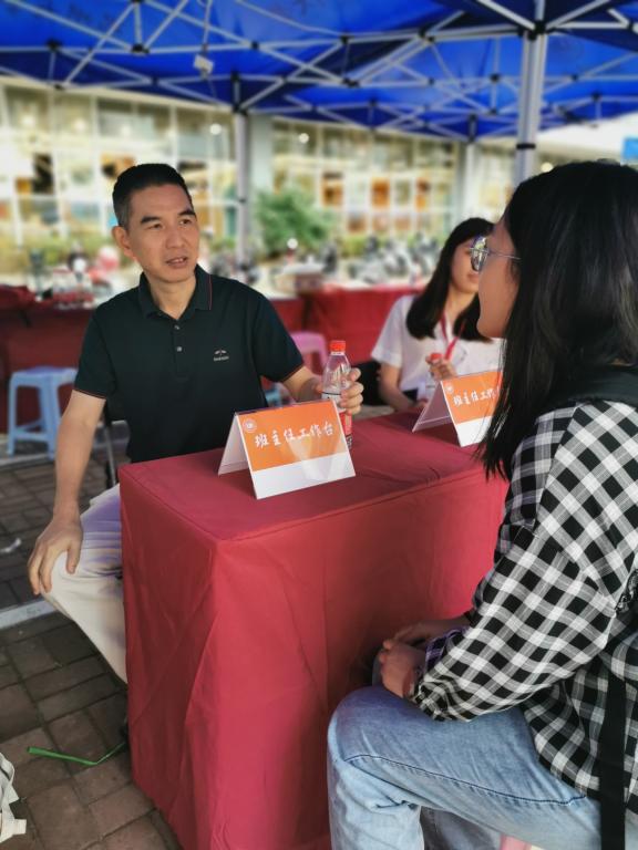 为积极推进三全育人工作,学院在报到点设置了班主任工作台,让新生在到校的第一天,就能认识班主任,并跟班主任谈心谈话,充分发挥班主任的育人主力军作用。在为期两天的新生报到日子里,学院9个新生班级的班主任,只要没有课程冲突,全都奔赴到新生报到点,热情迎接新生的到来,第一时间跟学生交朋友,成为今年学院迎新工作的亮点。