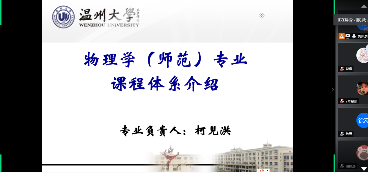 2020年5月11日晚上,永利官网物理学(师范)专业负责人柯见洪老师分别给18物理和19物理同学进行了一次线上选课指导,为同学们分析课程体系,指导选课情况。