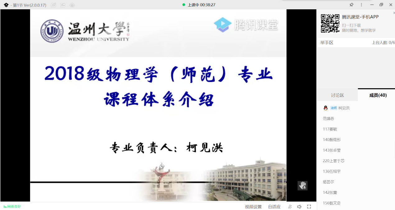 最后的提问环节,柯老师耐心地解答了同学关于《近代物理实验(二)》是否属于5.5个实践类学分之一的问题。至此,本次线上选课指导圆满结束。
