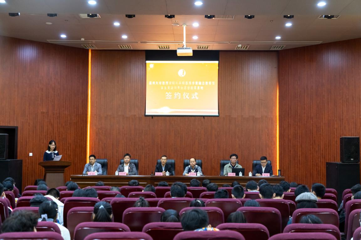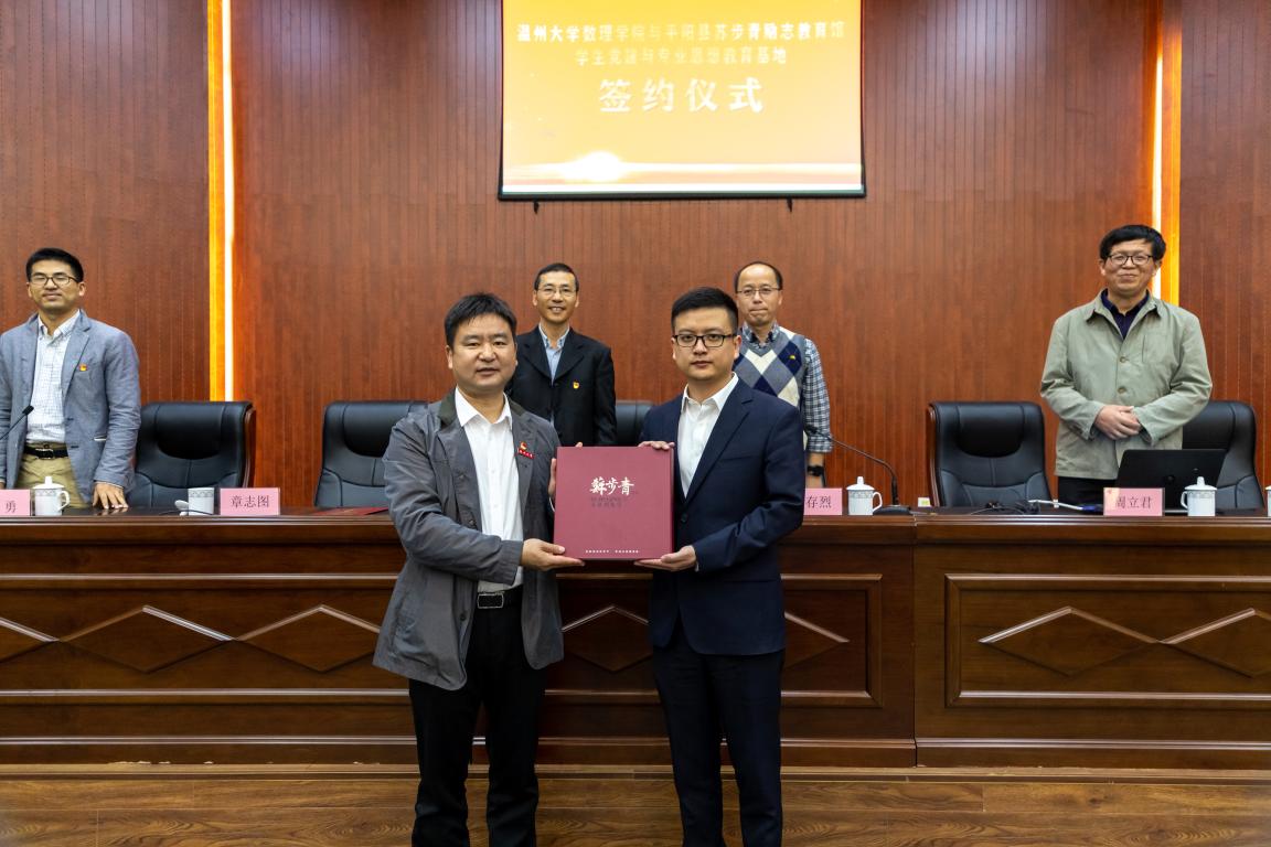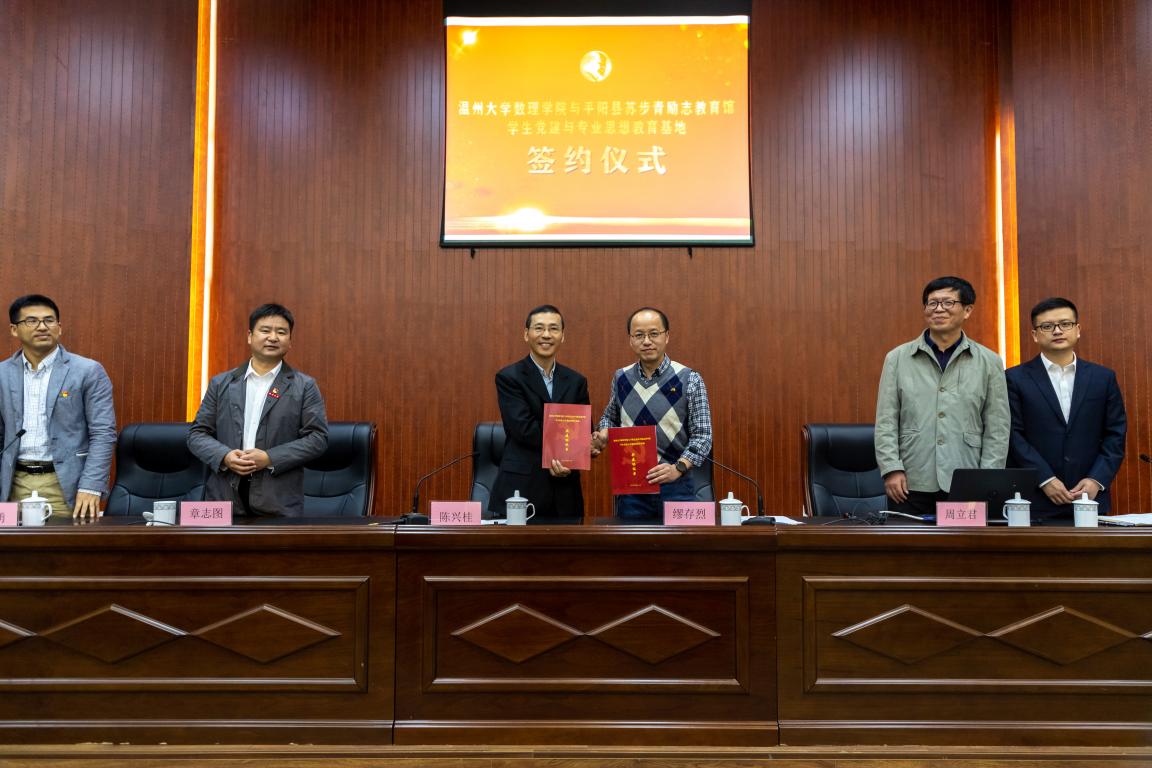 为促进校地合作,积极引进社会资源加强高校育人工作,2020年11月21日,永利集团304am官方入口与平阳县苏步青励志教育馆签署共建“学生党建与专业思想教育基地”协议。签约仪式在苏步青励志教育馆报告厅举行,该馆馆长李荣主持,温大永利集团304am官方入口党委书记陈兴桂、平阳县文广旅体局副局长缪存烈等领导、以及永利集团304am官方入口今年新引进教师和数学系新生参加。