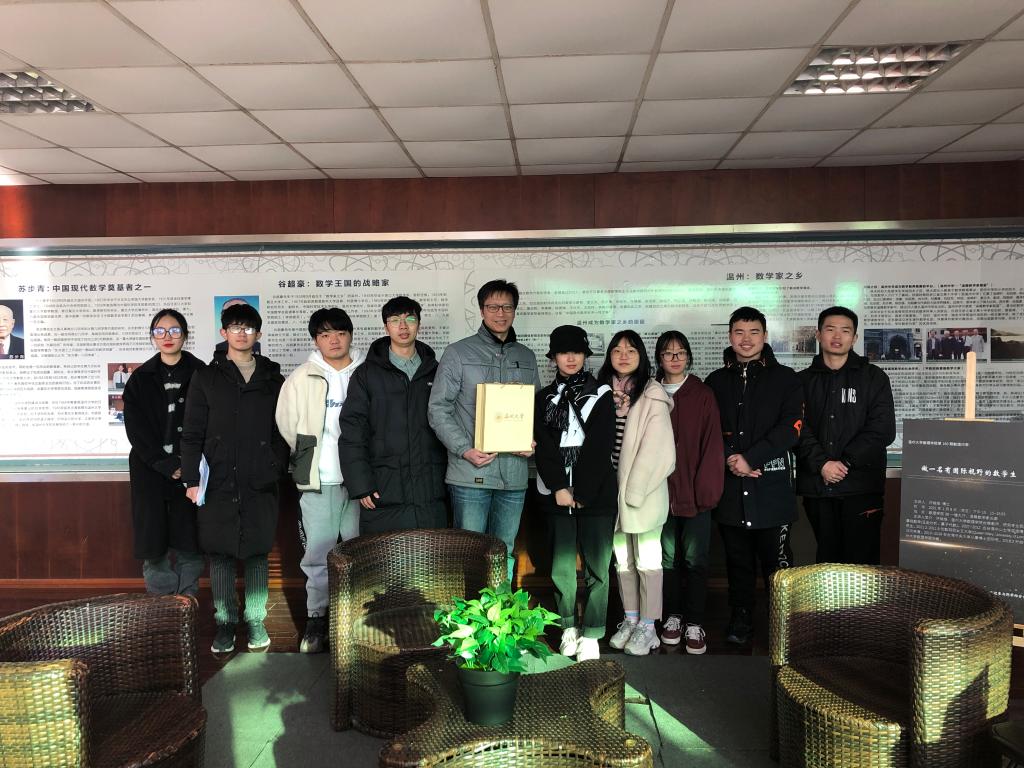 为提升国际化工作水平,近日,永利集团304am官方入口邀请台湾中山大学博士、台湾中央大学博士后许铭修老师,指导数学专业大学生拓展国际视野。许老师结合自己海外学习经历,倡导大家在学好数学基础上,关注海外高校情况,积极参与海外交流学习项目。许老师还带领大家参观温籍数学家长廊,讲解温籍数学家故事,并指出温籍数学家的共同点,即大家都有海外学习经历,这说明了海外学习的重要性。这次指导活动也是永利集团304am官方入口第160期数理问茶,大家都表示很有收获,同时也为即将返台工作的许老师送上了美好祝福。
