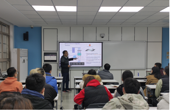 3月5日上午,厦门大学物理系教授、博士生导师陈虎教授,国科大温州研究院博士后郭子龙来访永利集团304am官方入口,在杨光参教授的主持下,于永利集团304am官方入口3B105智慧教室进行精彩的学术报告。永利官网单分子操纵课题组的师生们积极参与,进行了一场韵味无穷的学术交流,大家广开言路、相互学习,学术气氛浓厚。