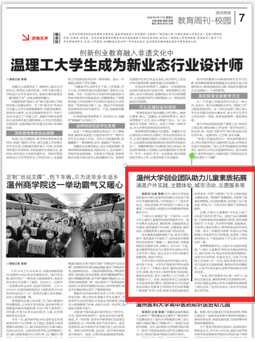 温州商报:永利集团304am官方入口创业团队助力儿童素质拓展 涵盖户外实践、主题体验、城市活动、志愿服务等