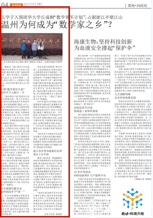 温州晚报:五学子入围清华大学丘成桐“数学领军计划” ,占据浙江半壁江山,温州为何成为“数学家之乡”?