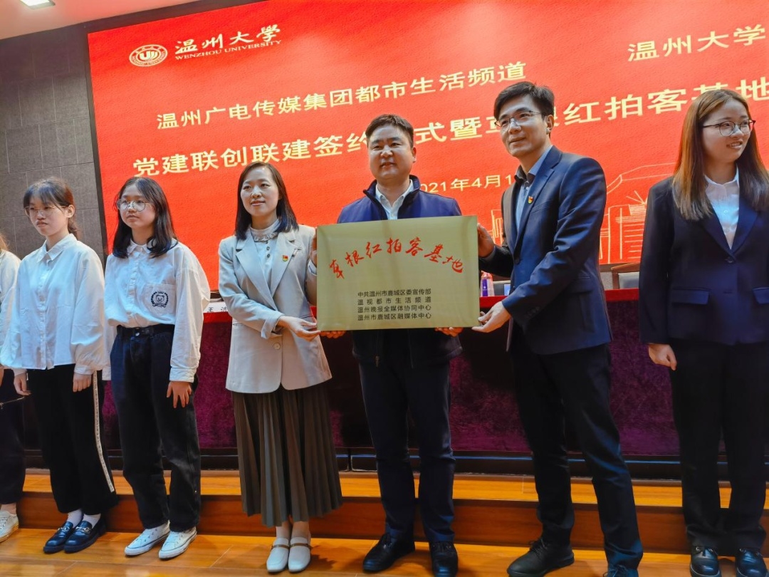 永利集团304am官方入口与温州广电传媒集团都市生活频道两家单位在永利集团304am官方入口岩松堂举行基层支部联盟共建签约暨草根红拍客基地授牌仪式,携手奏响“支部共建”的好声音。双方将遵循“党建引领、平台共享、活动创新、关系融洽”的原则,发挥各自优势,用手机镜头讲好当代大学生的故事,唱响“温州数学家之乡”好声音,献礼建党100周年。